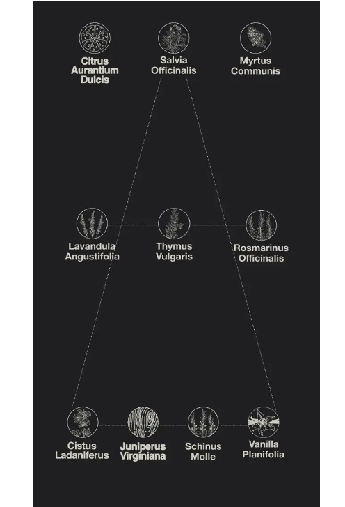 FINALE: una chiusura lunga, elegante, vigorosa, che contempla l’aroma resinoso del Cisto, e il vigore del legno di Cedro, ravvivati da un pizzico di Pepe rosa e adagiati su una scia delicatamente gourmand di Vaniglia.